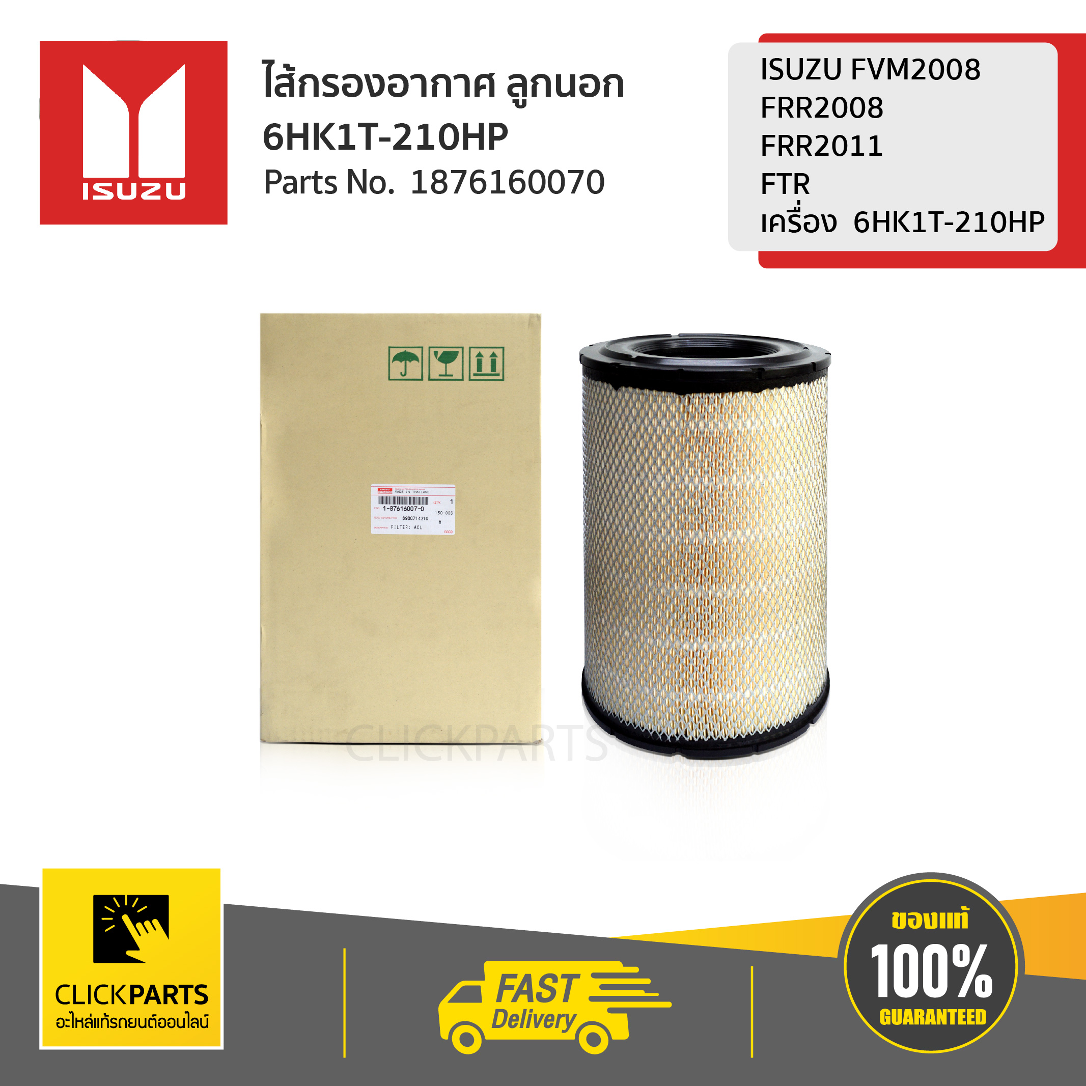 ISUZU #1876160070 ไส้กรองอากาศ ลูกนอก 6HK1T-210HP ISUZU FVM2008 FRR2008 FRR2011 FTRเครื่อง 6HK1T-210HP ของแท้ เบิกศูนย์