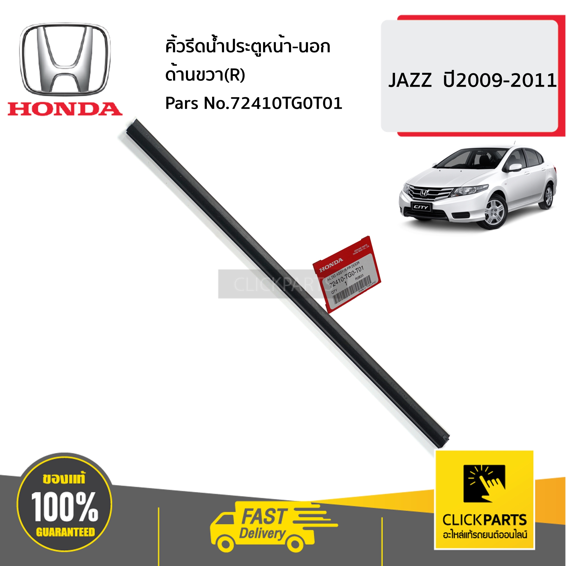 HONDA #72410TG0T01 คิ้วรีดน้ำประตูหน้า-นอก ด้านขวา(R) JAZZ ปี2009-2011 ของแท้ เบิกศูนย์