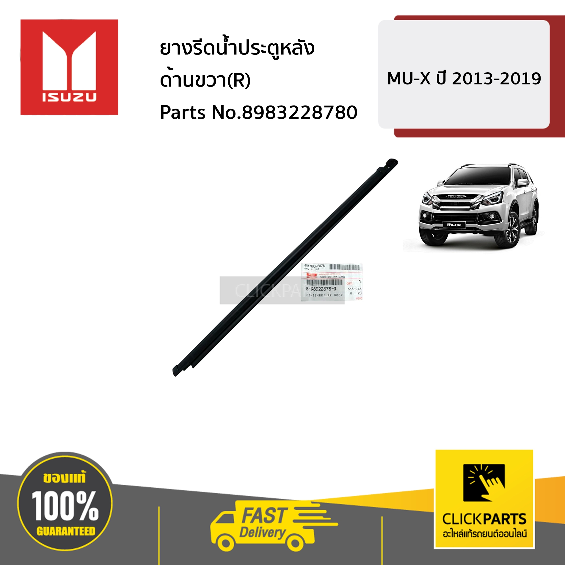 ISUZU #8983228780 ยางรีดน้ำประตูหลัง ด้านขวา(R) MU-X ปี 2013-2019 ของแท้ เบิกศูนย์