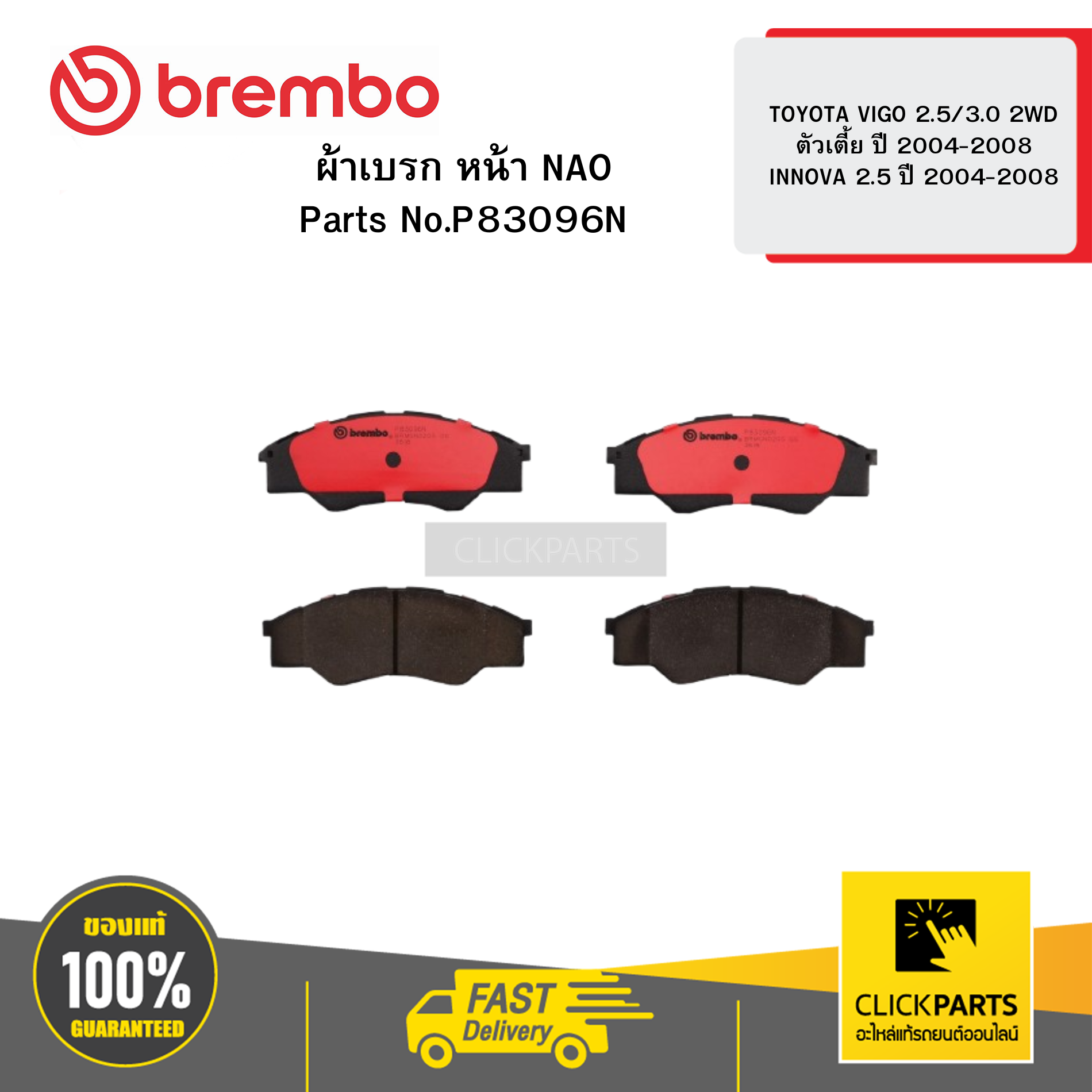 BREMBO P83096N ผ้าเบรก หน้า NAO VIGO 2.5/3.0 2WD ตัวเตี้ย ปี 2004-2008 INNOVA 2.5 ปี 2004-2008