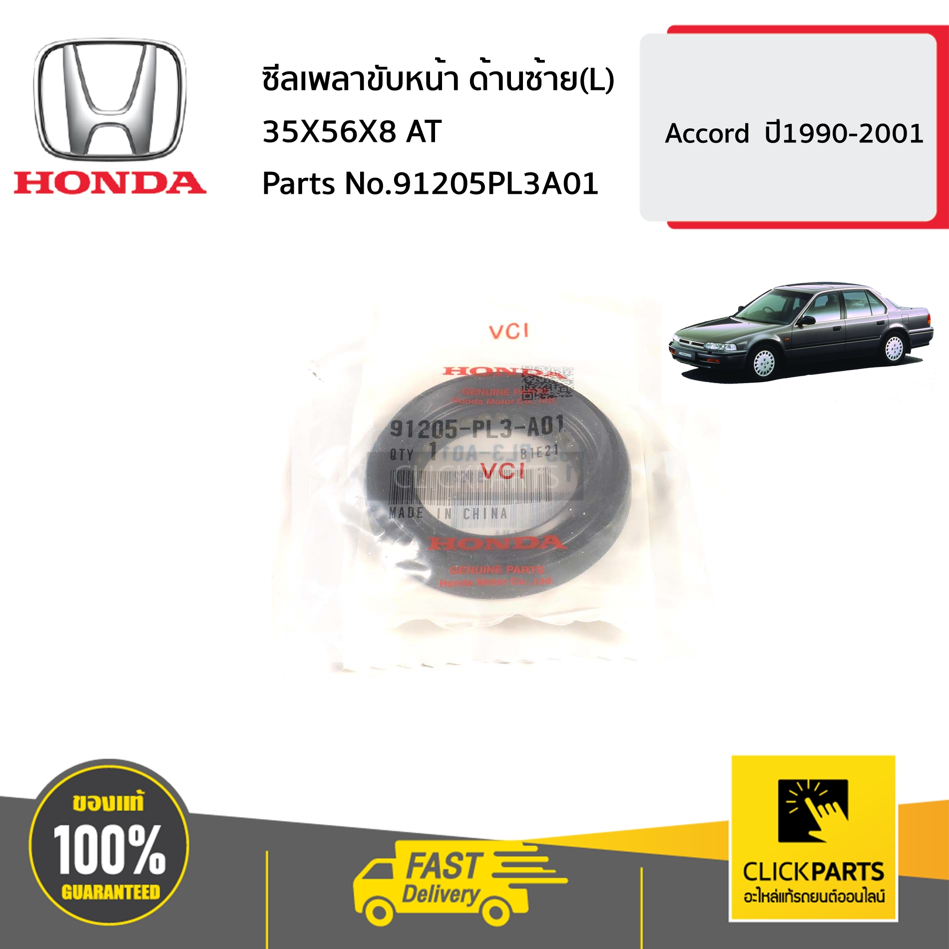 HONDA #91205PL3A01 ซีลเพลาขับหน้า ด้านซ้าย(L) 35X56X8 AT Accord ปี1990-2001 ของแท้ เบิกศูนย์