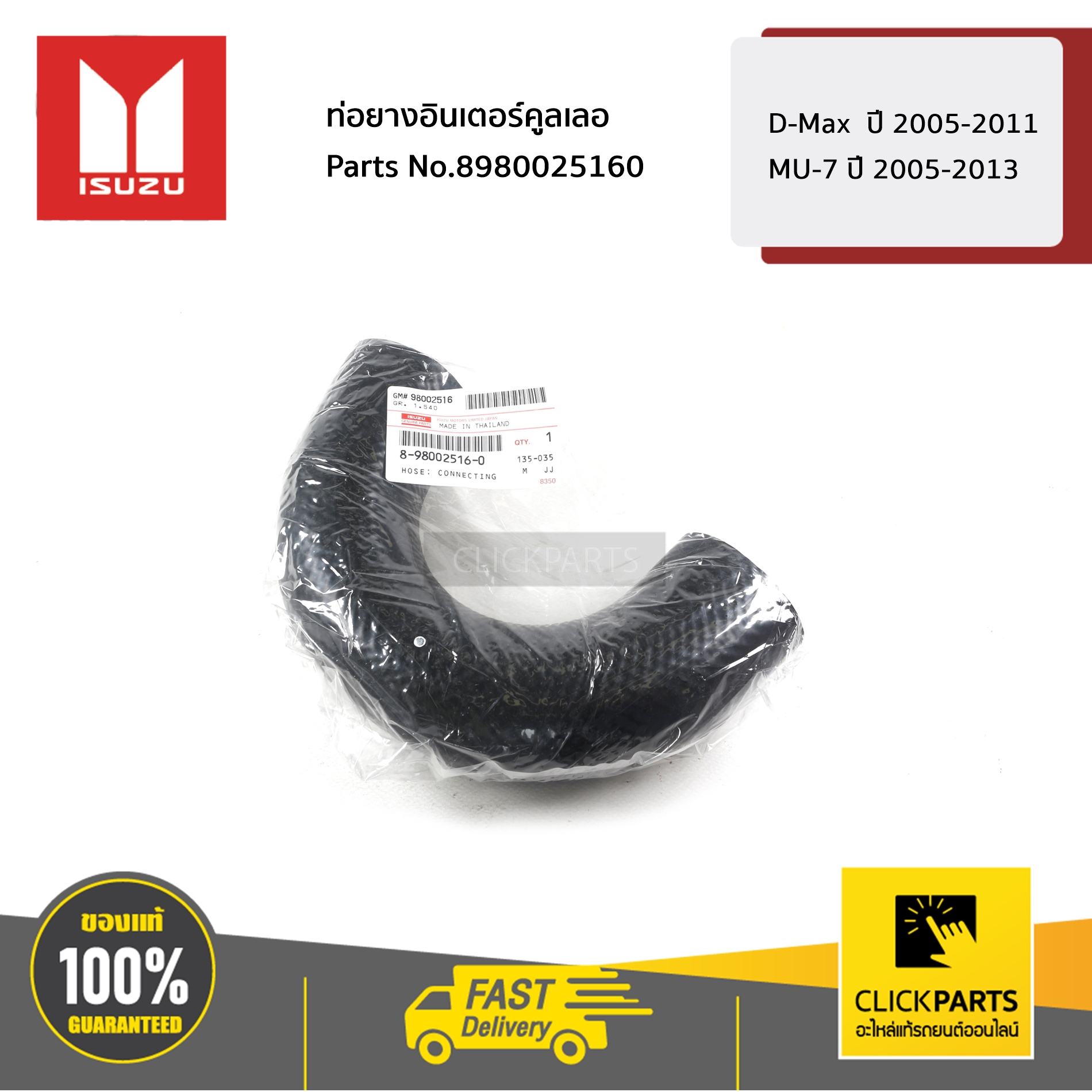 ISUZU #8980025160 ท่อยางอินเตอร์คูลเลอ D-Max ปี 2005-2011 / MU-7 ปี 2005-2013 ของแท้ เบิกศูนย์