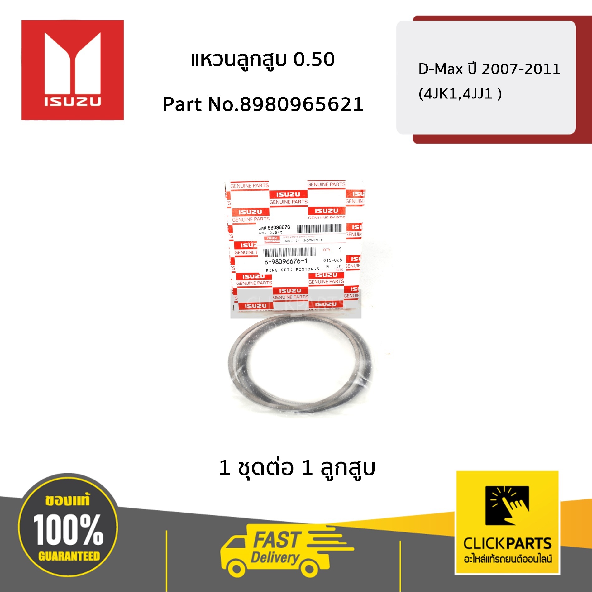 ISUZU #8980965621 แหวนลูกสูบ 0.50 D-Max ปี 2007-2011 (4JK1,4JJ1 ) ของแท้ เบิกศูนย์